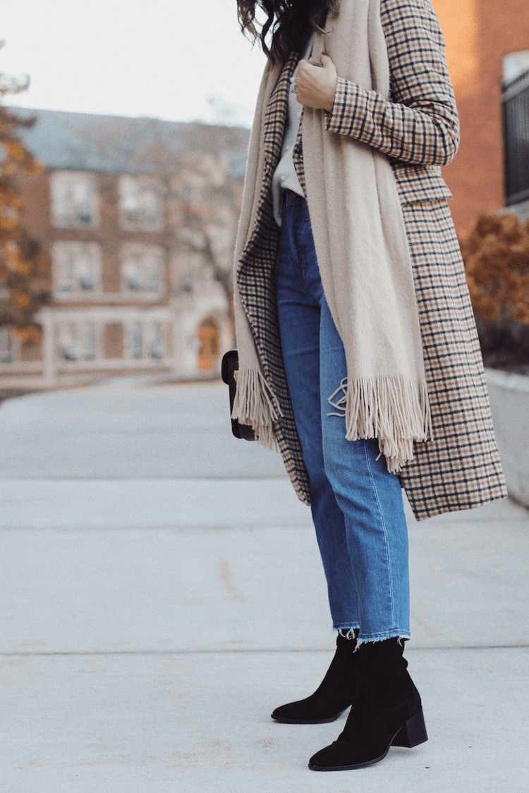 Coat: Club Monaco in xs – on major sale! | Sweater: Madewell in xs | Jeans: Madewell – similar styles in more sizes here and here | Booties: Aquatalia – on sale tts | Scarf: H&M (so soft)